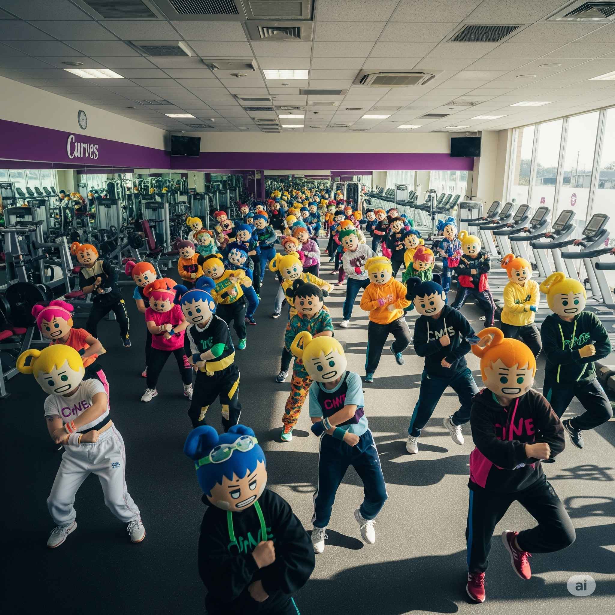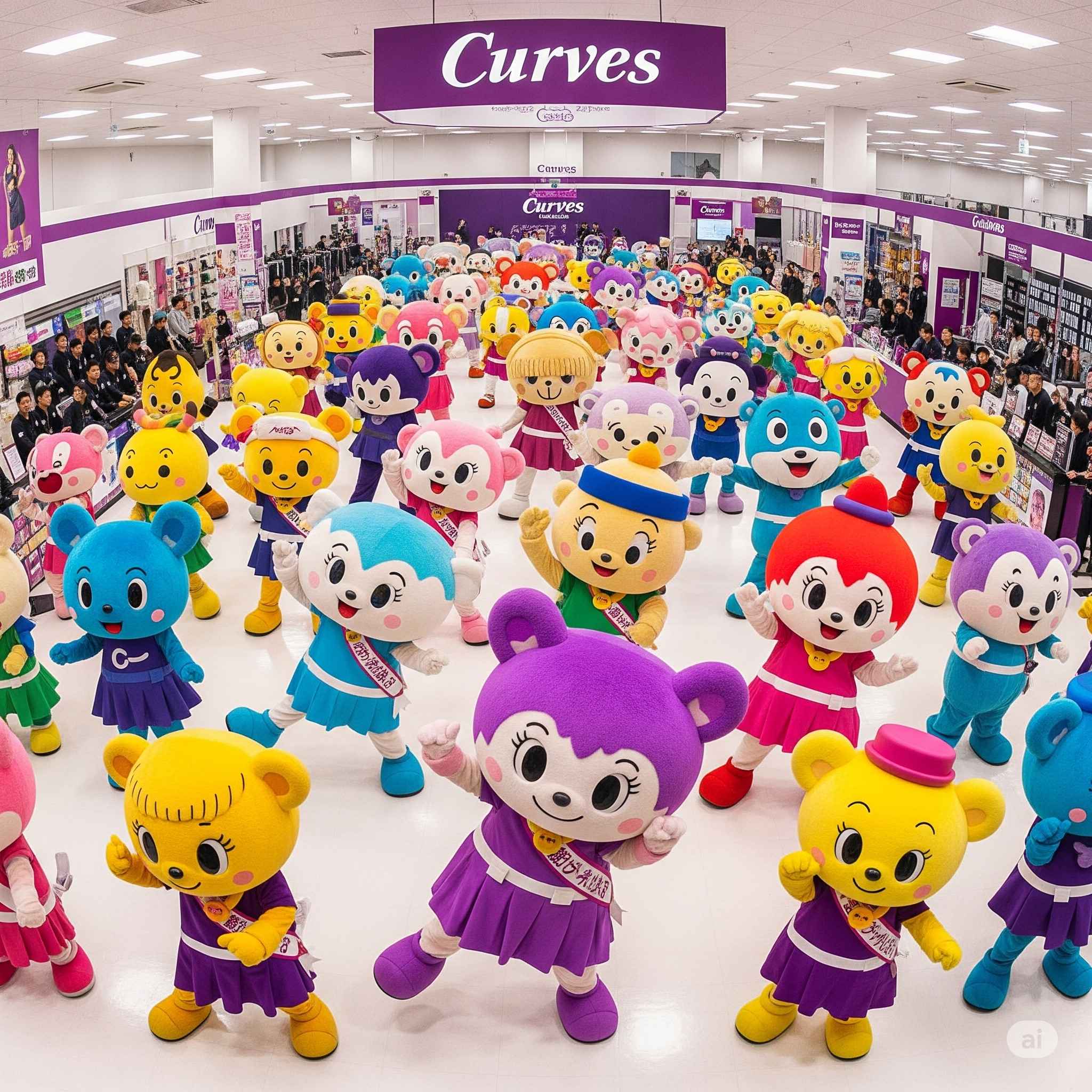 【お題】大手企業のマスコットキャラクターみたいなキャラ関係者たちが踊るカーブスの店舗、予想図。