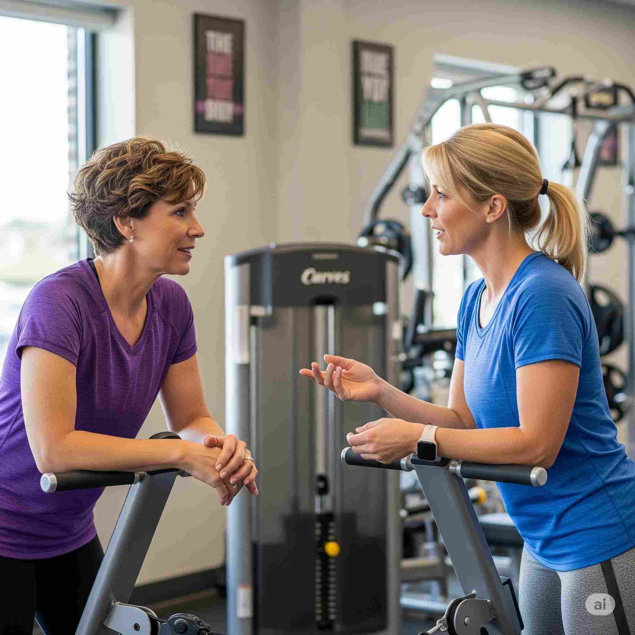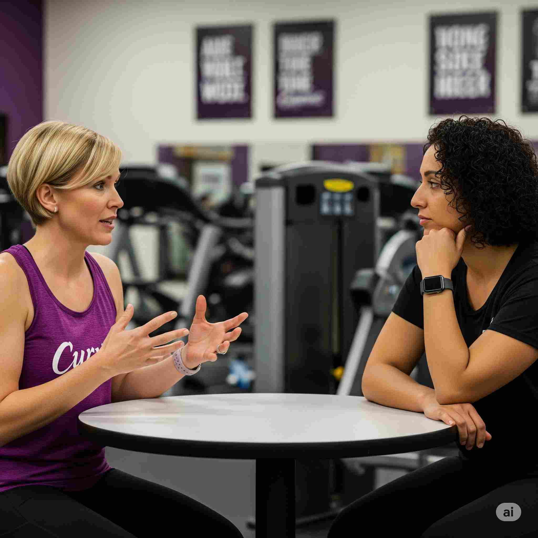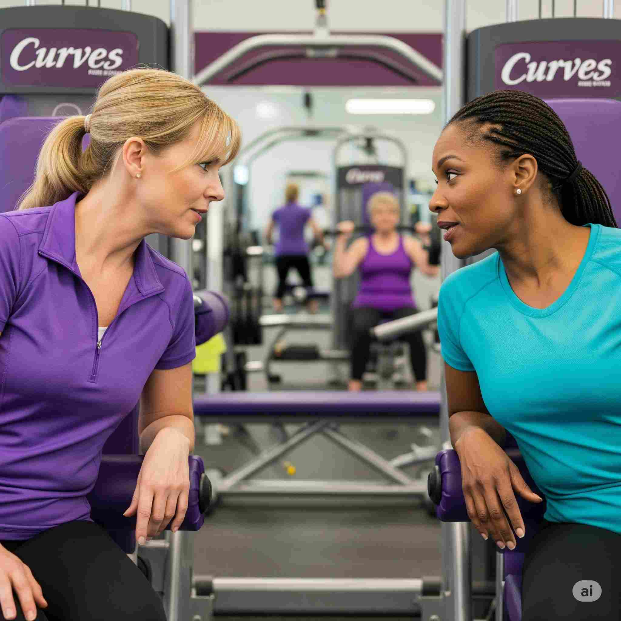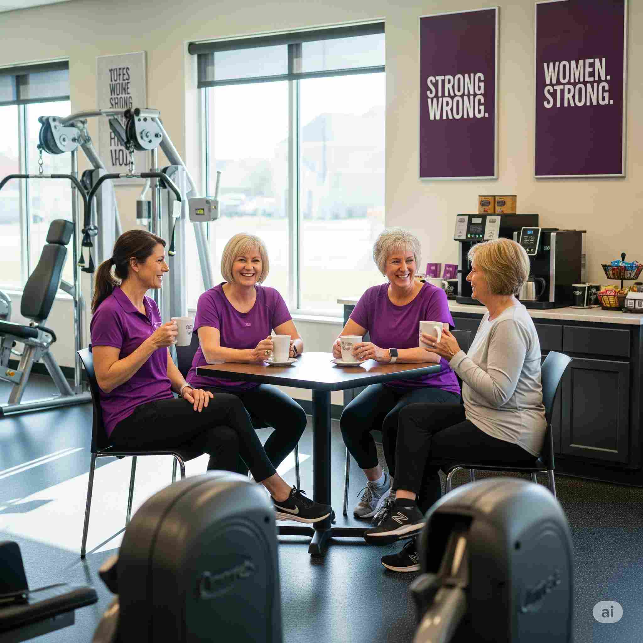【お題】カーブスの店舗にて、お昼のブレイク、コーヒータイムを取るクライアントたち