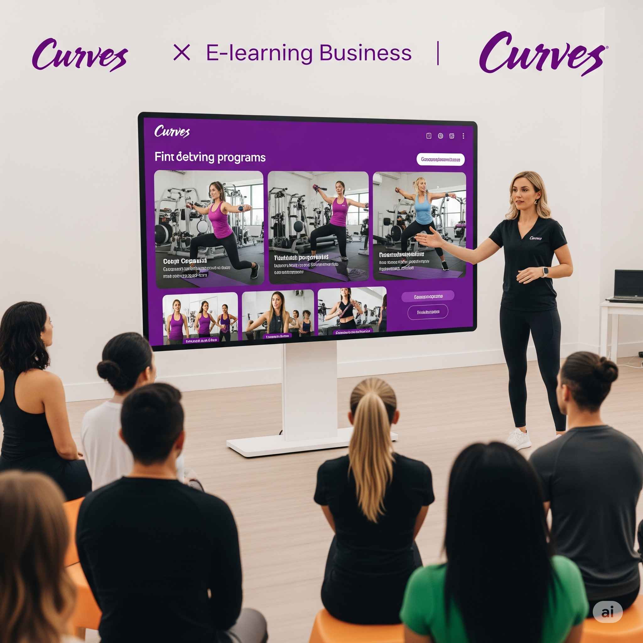 【お題】カーブスとeラーニング業がコラボ、健康オンライン講義の様子、予想図。