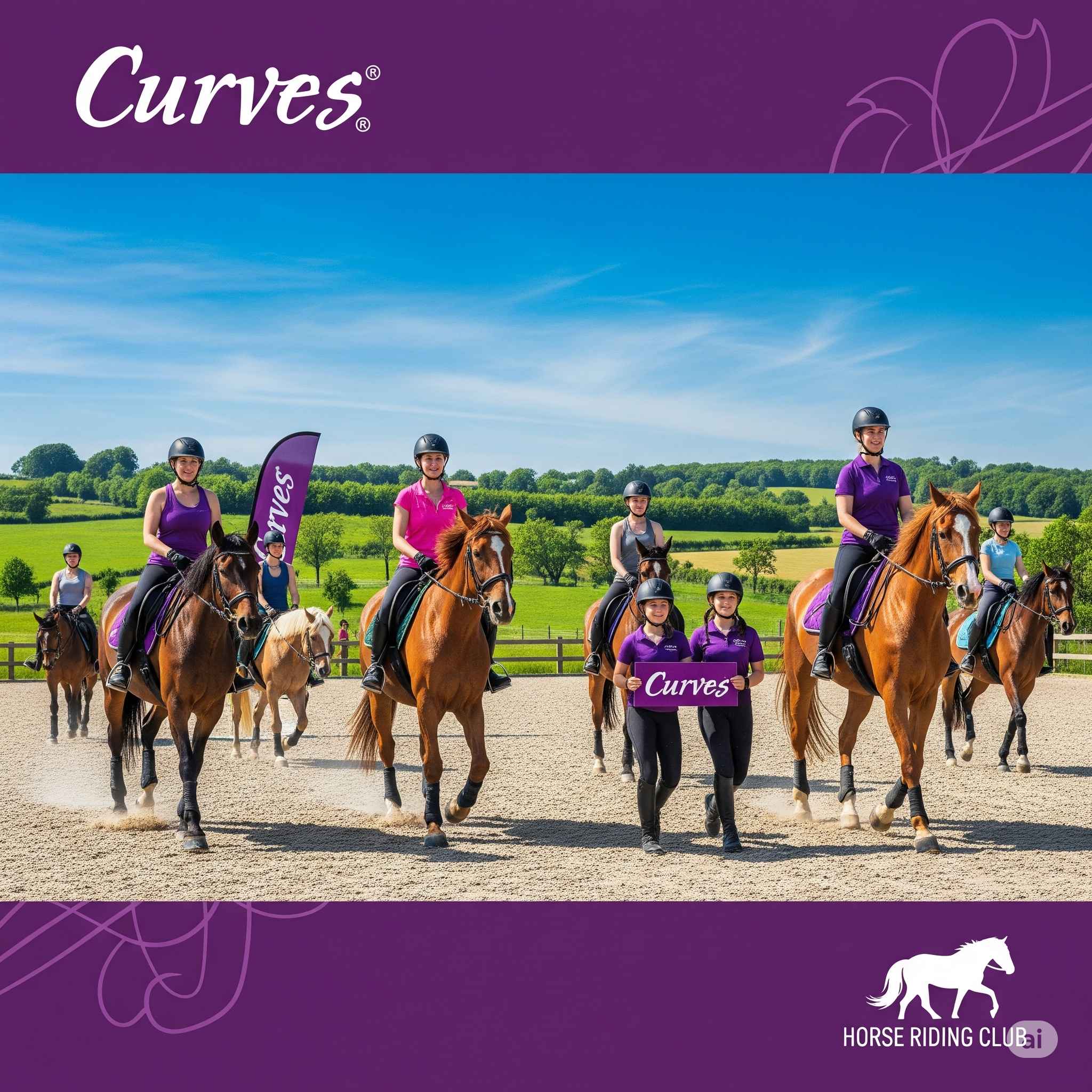 【お題】カーブスと乗馬関連がコラボ、馬にまたがりエクササイズする人々