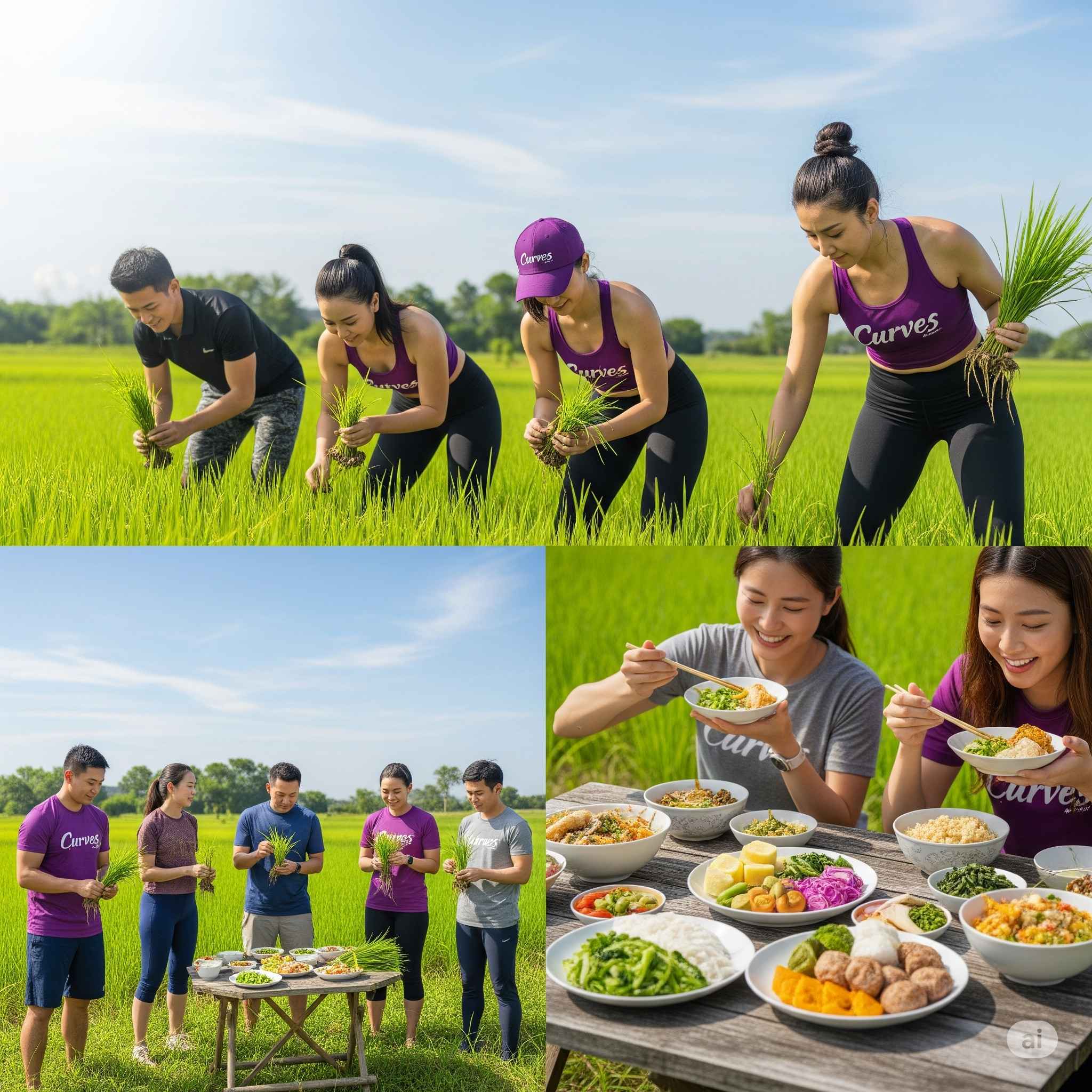 【お題】カーブスと農業がコラボ、屋外で田植え風のダイエットで盛り上がる、予想図