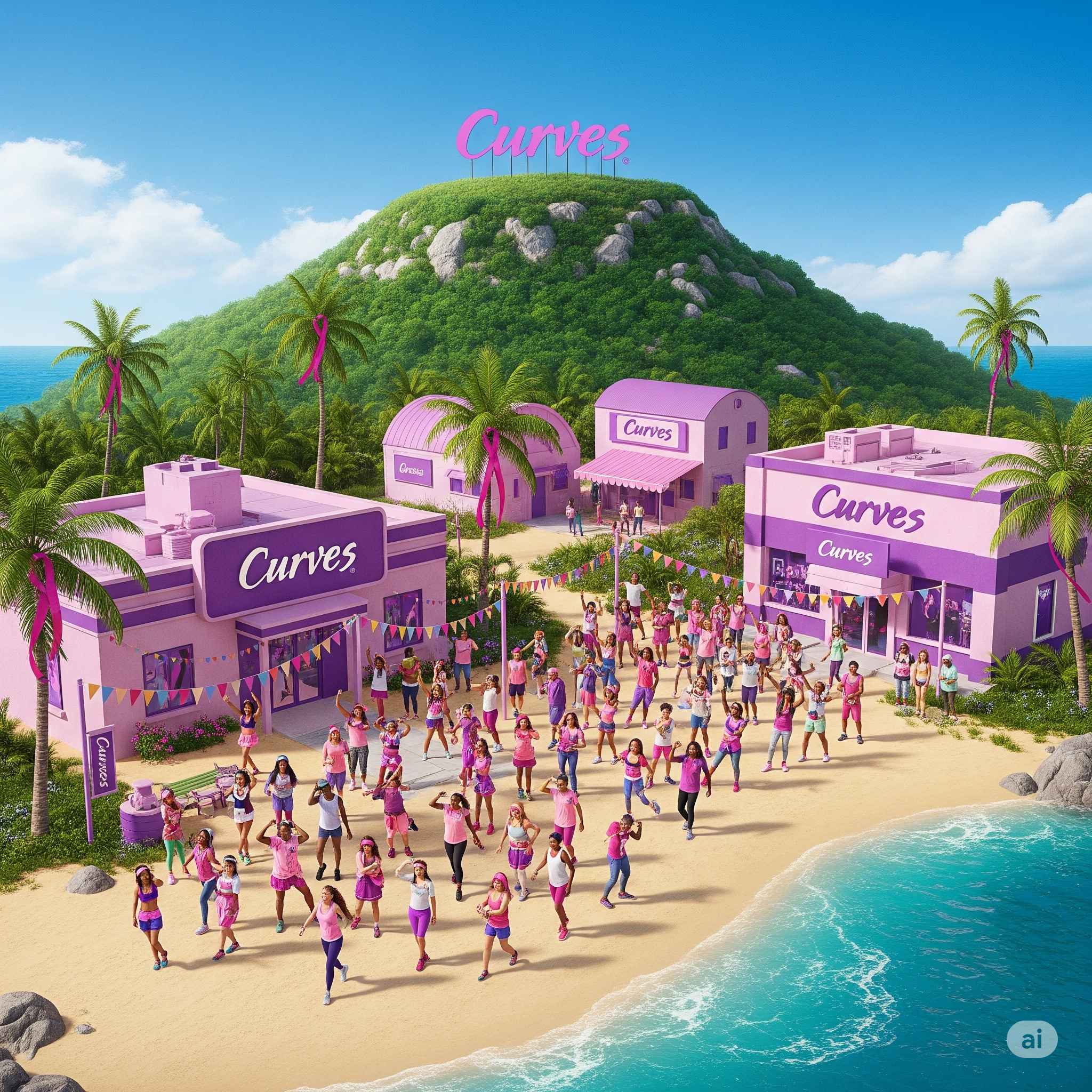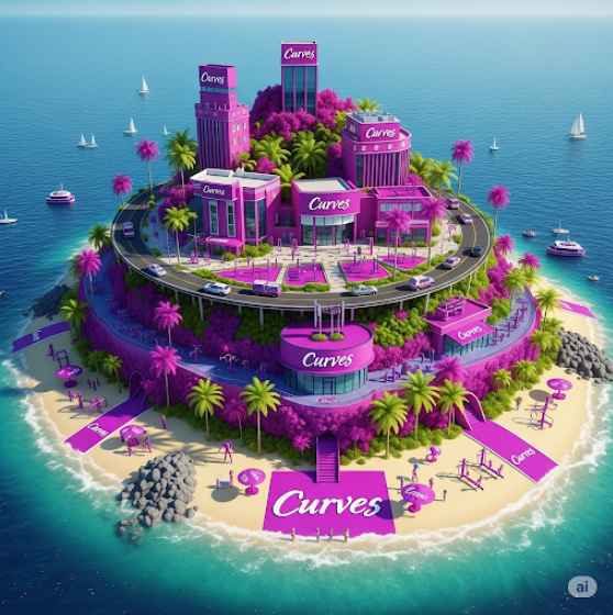 【お題】三重県伊勢志摩の小島をカーブスが買収。カーブスアイランドに。盛り上がる様子、予想図。