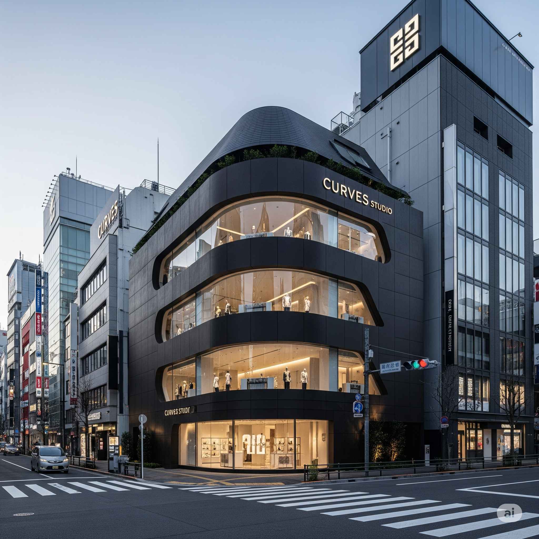 【お題】某有名デザイナーがデザインした原宿にあるカーブスの店舗、予想図。