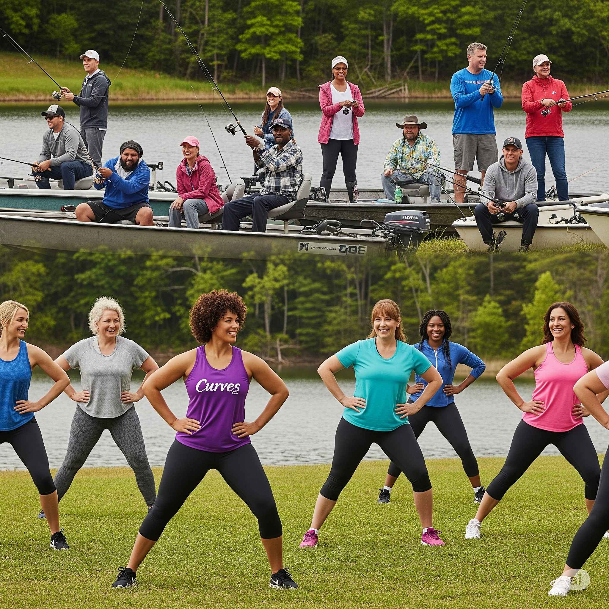 【お題】カーブスと漁業がコラボ、屋外でダイエットしながらフィッシング、予想図。