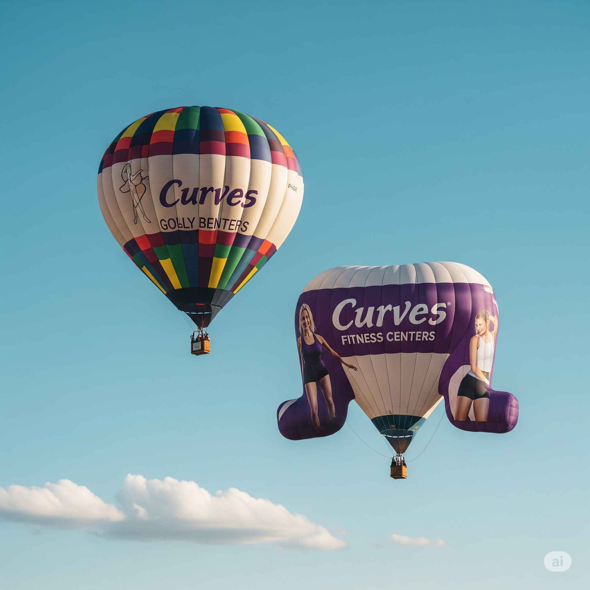 【お題】昔ながらの熱気球やアドバルーンで宣伝するカーブス、その様子