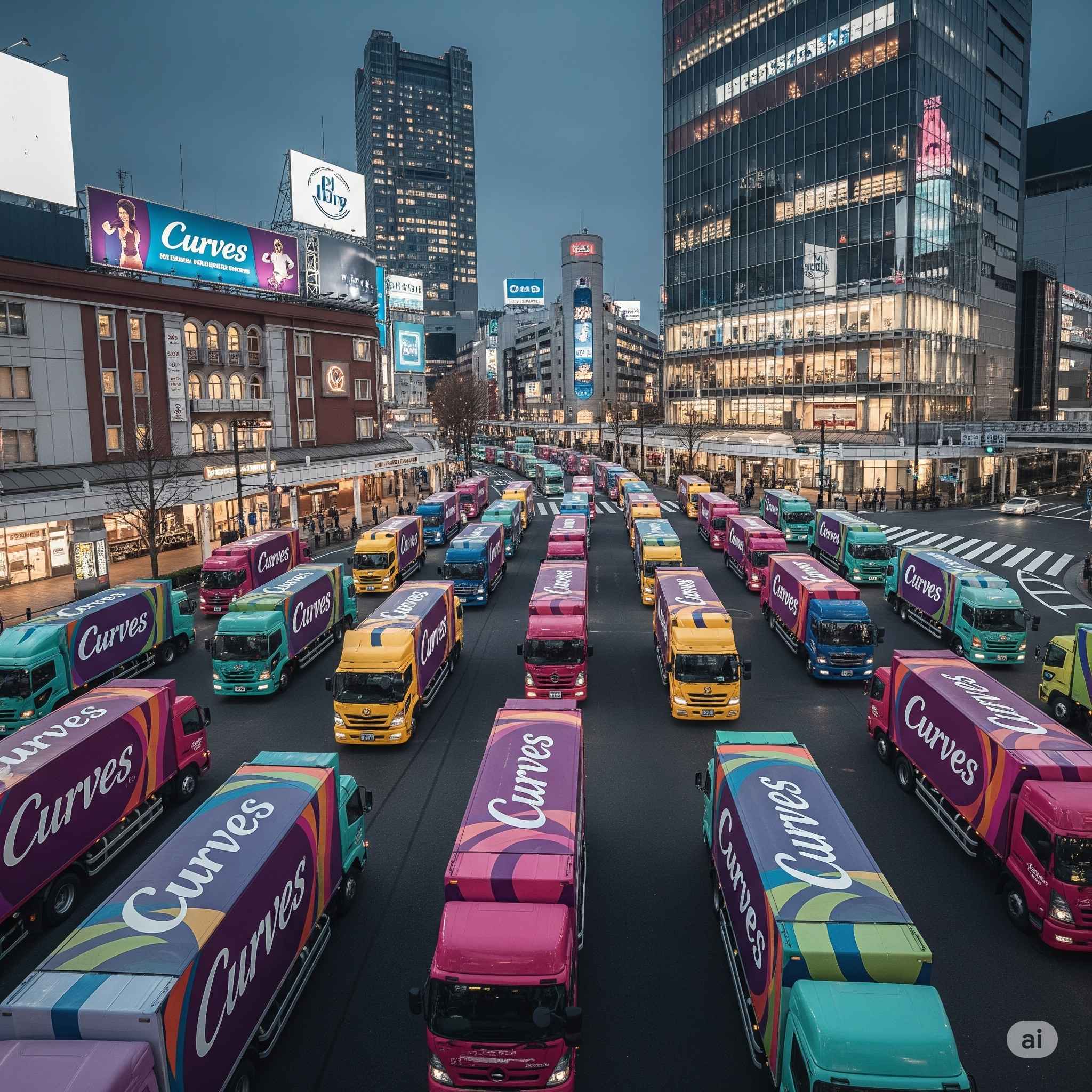 【お題】渋谷駅前を走るカーブスの宣伝カーたち、予想図