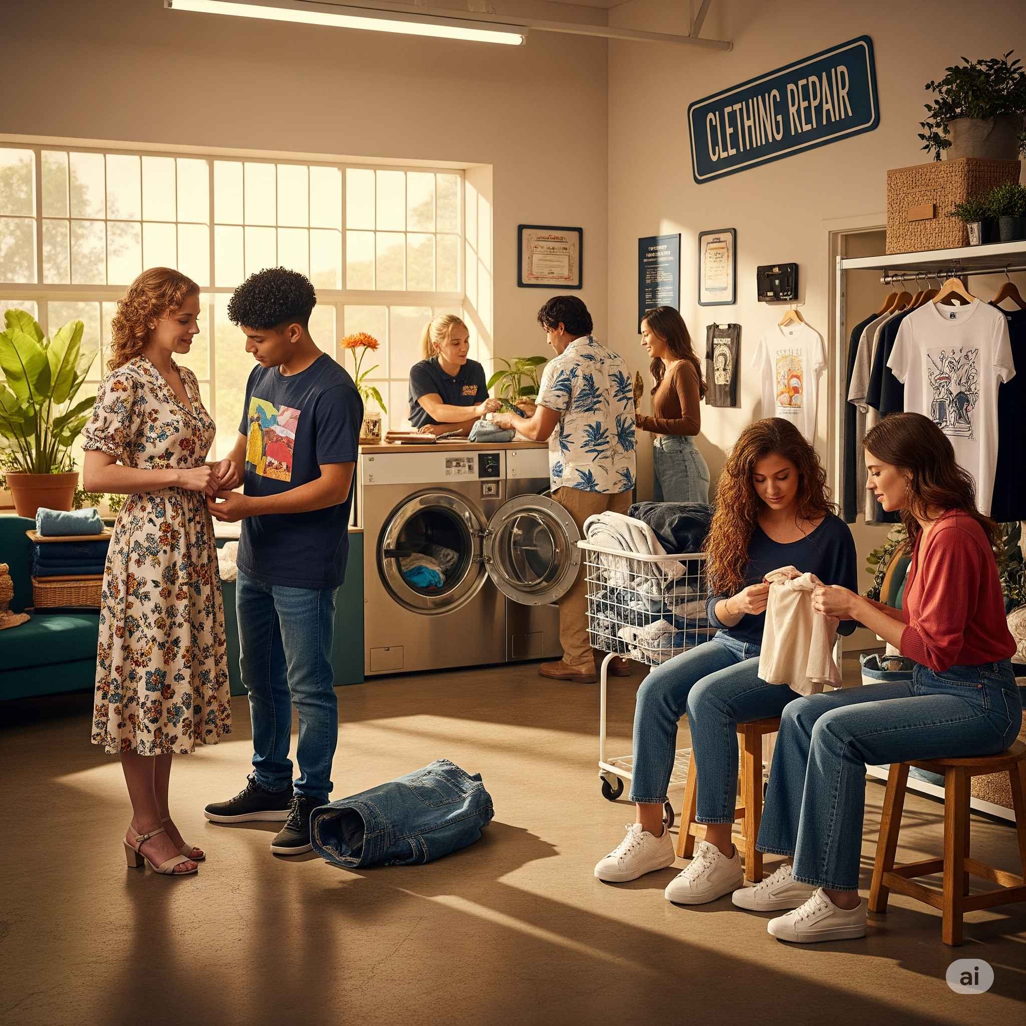 【お題】コインランドリーと大手裁縫関係企業がコラボ、待ち時間に衣類のほつれ等を直すサービス