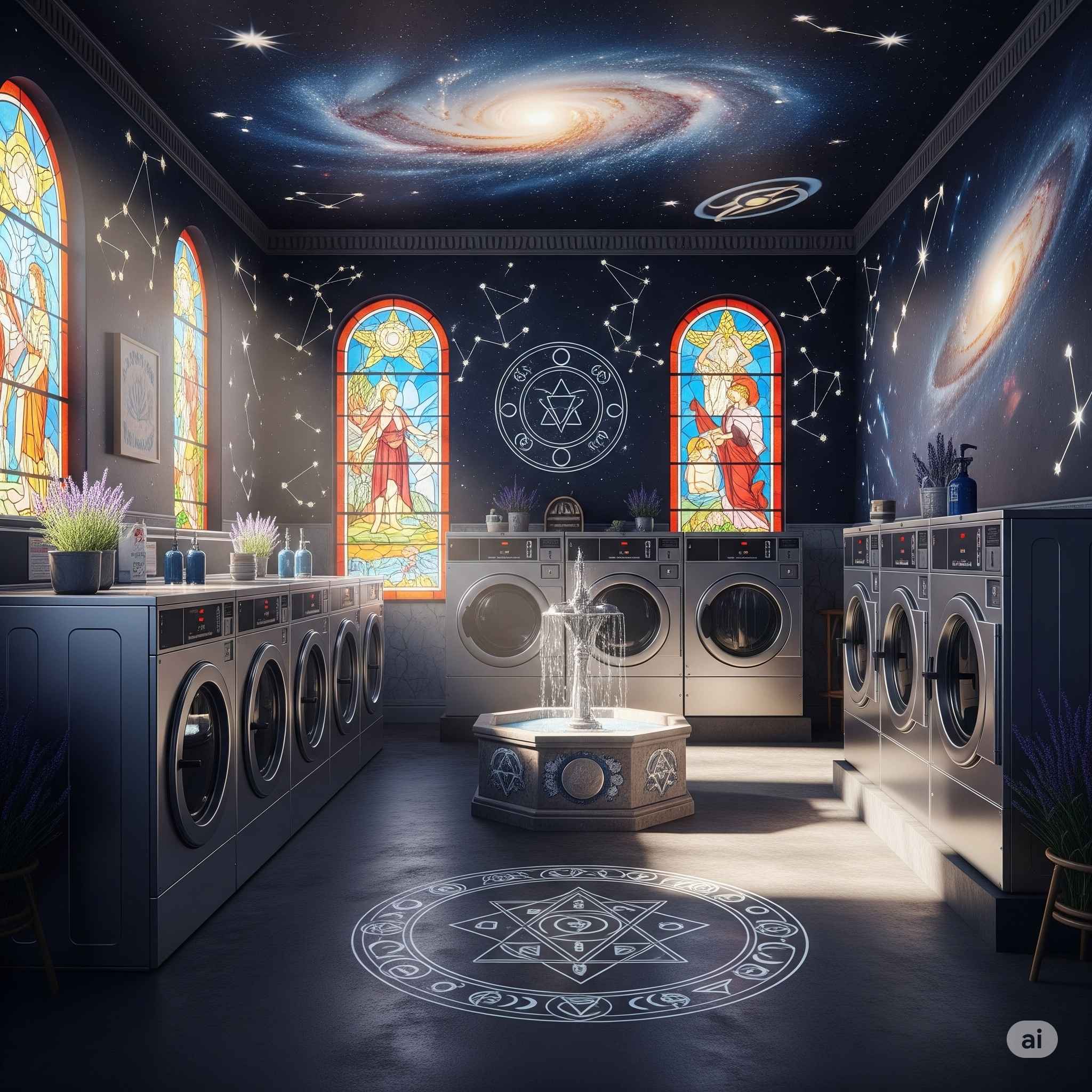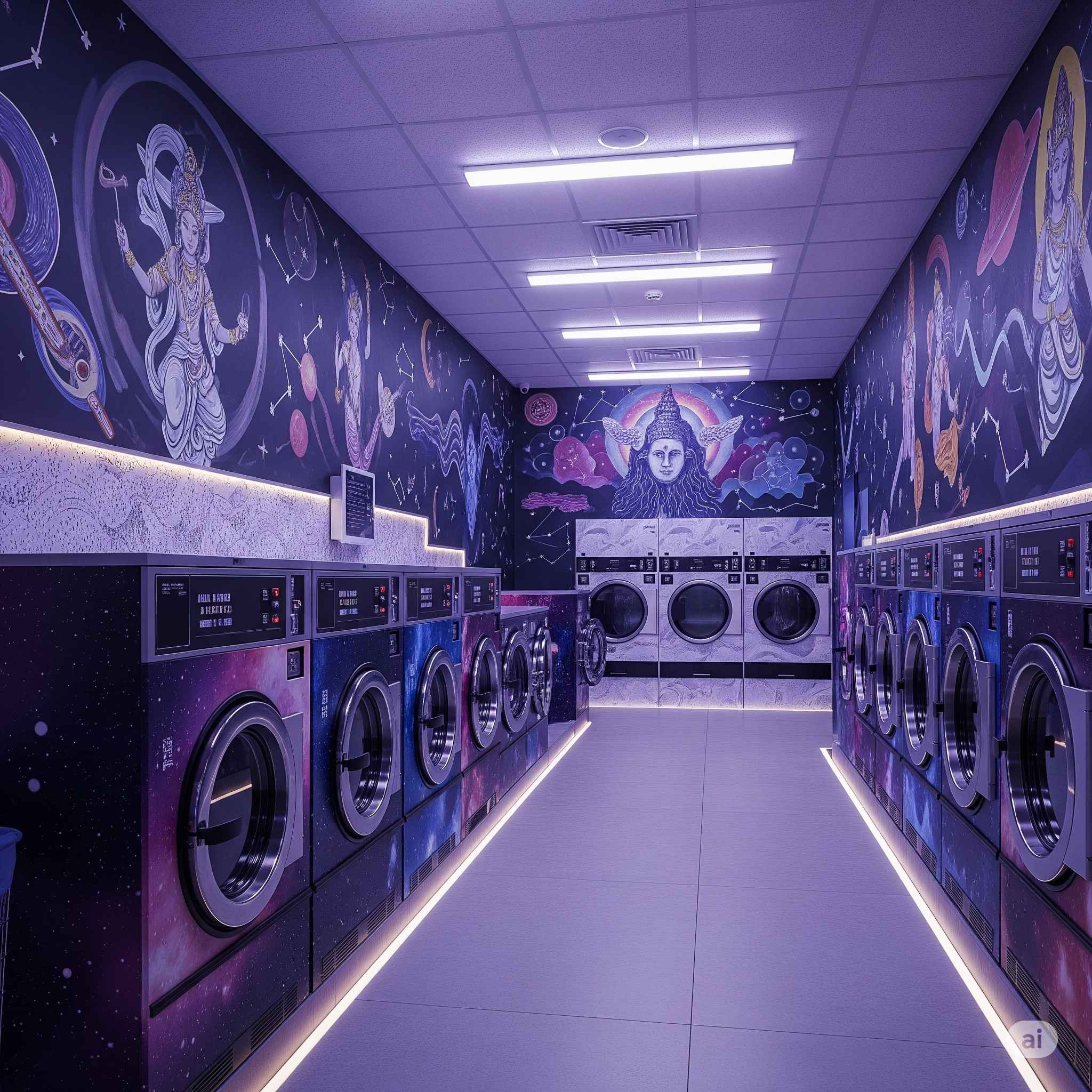 【お題】宗教関係者向け、宇宙や神を感じさせるコインランドリーの店舗
